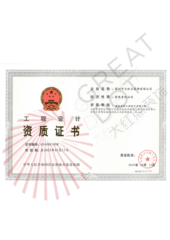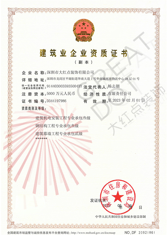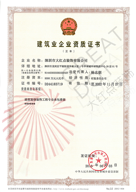 深圳市勝貴装饰有限公司是专业从事住宅批量精装、大型商场、星级酒店、高端写字楼、公共空间等大型室内装饰工程的设计与施工,拥有《建筑装修装饰工程专业承包壹级》、《建筑装饰工程设计专项乙级》、《建筑幕墙工程专业承包贰级》、《钢结构工程专业承包叁级》、《建筑机电安装工程专业承包叁级》等资质。